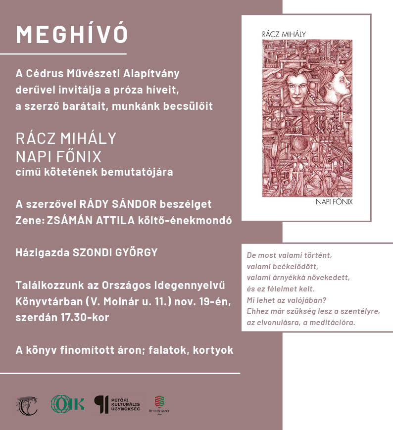 Rácz Mihály: Napi főnix | Könyvbemutató | Meghívó