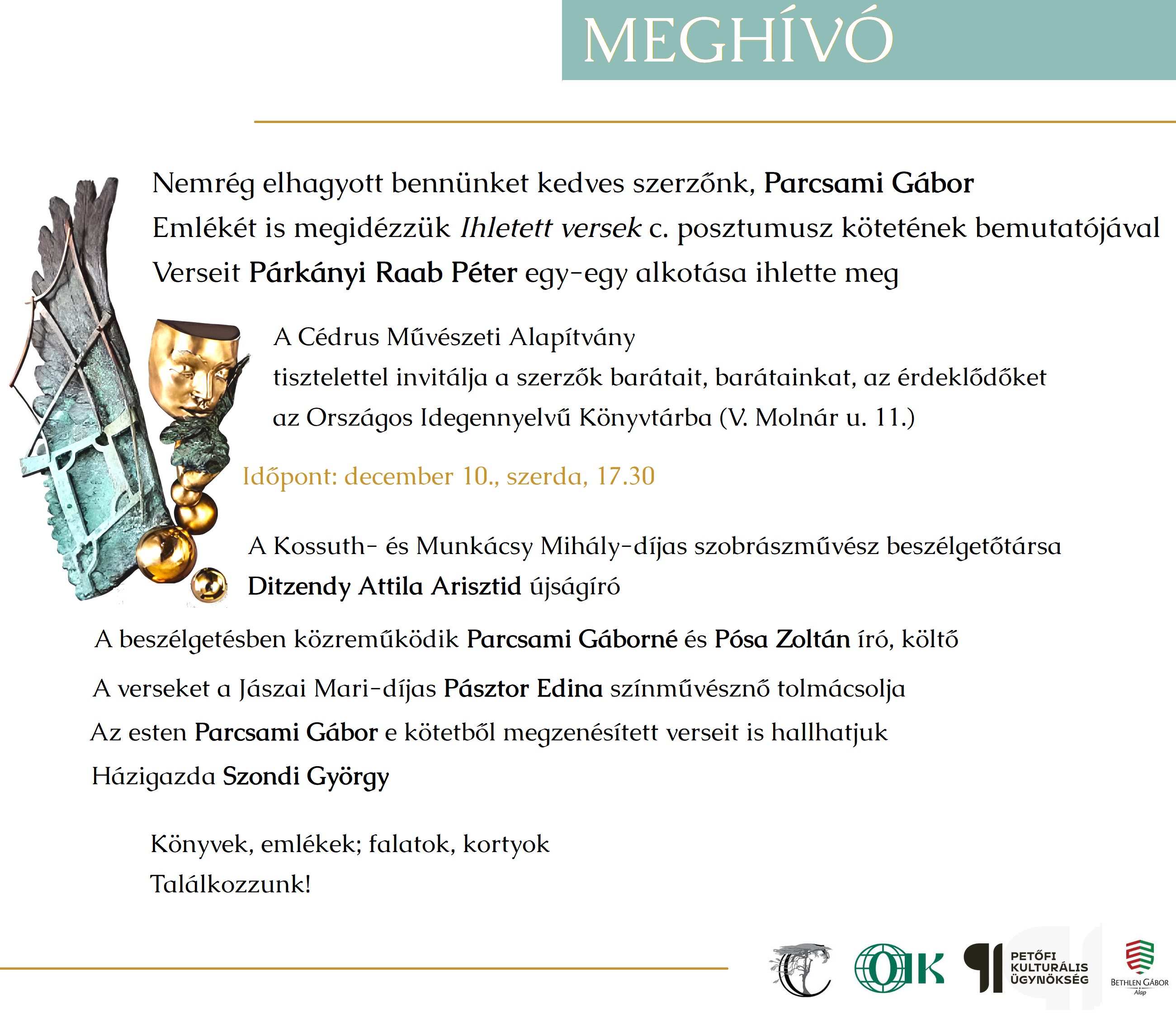 Parcsami Gábor – Párkányi Raab Péter: Ihletett versek (Szobrok költészete) | Könyvbemutató | Meghívó