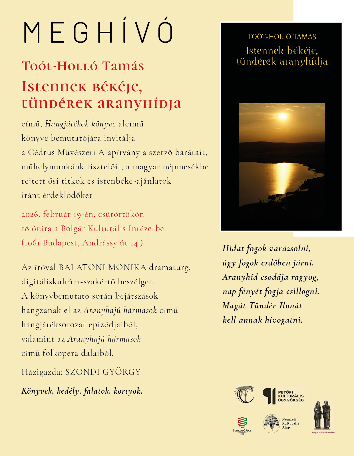 Toót-Holló Tamás: Istennek békéje, tündérek aranyhídja | Könyvbemutató | Meghívó