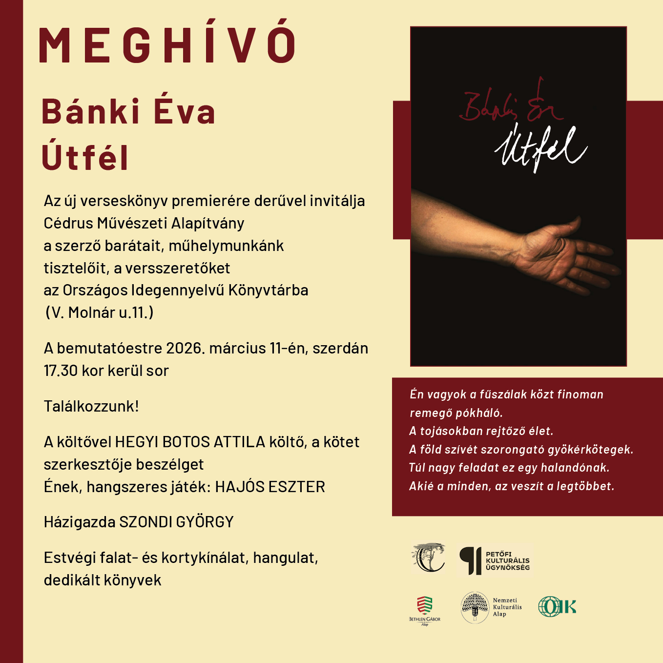 Bánki Éva: ÚTFÉL | Könyvbemutató | Meghívó