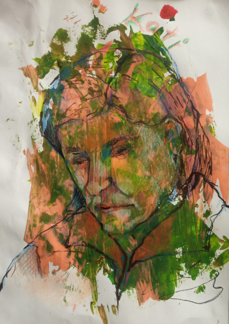 Kezdetben Isten teremtette a színt és a formát. És a föld vala színtelen és forma nélkül való, és színtelenség és formátalanság lebege a vizeknek fölötte. És mondá Isten: teremtsünk embert a mi hasonlatosságunkra, hogy színekkel és formákkal töltené be az földi tereket, és nevezé Isten ama embert művésznek, akit képére és hasonlatosságára teremte vala az Ő nagy dicsőségére. És kezde ama művész-fajta ember tevékenykedni vala, és az ő keze nyomán megtelének az világnak terei formákkal és színekkel ama ős-tengerek, és mondá Isten: teremténk ama művész-fajta embert az mi nagyobb dicsőségünkre, és ímé: ez kezünk alkotta művész-féle ember megtölté színekkel az színtelen firmamentomokat, és kölcsönze kontúrt ama szegíny semmibe-veszendőknek. És este lett és reggel, és Isten látá, hogy jó és szép mindaz, amit ama művész-féle teremtménye megalkota: kontúrokat kapnak az hegyek és az völgyek, és mindama fönti és alanti vizek pompázni kezdének az szivárványnak minden színeiben.