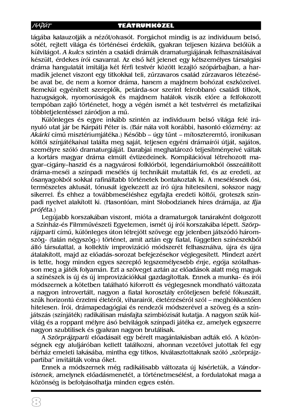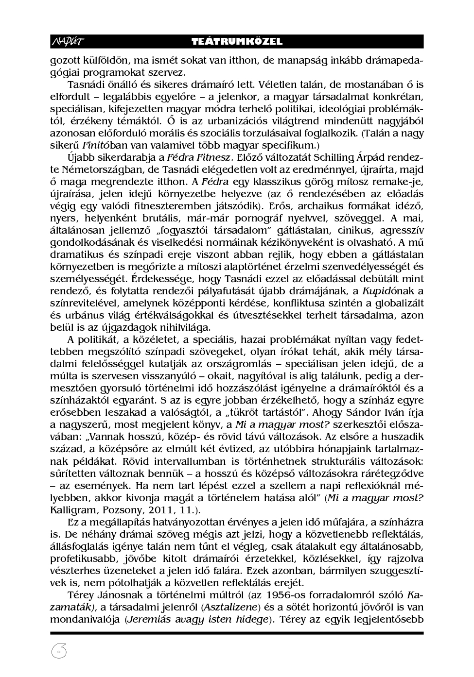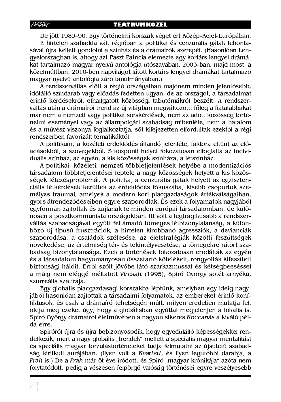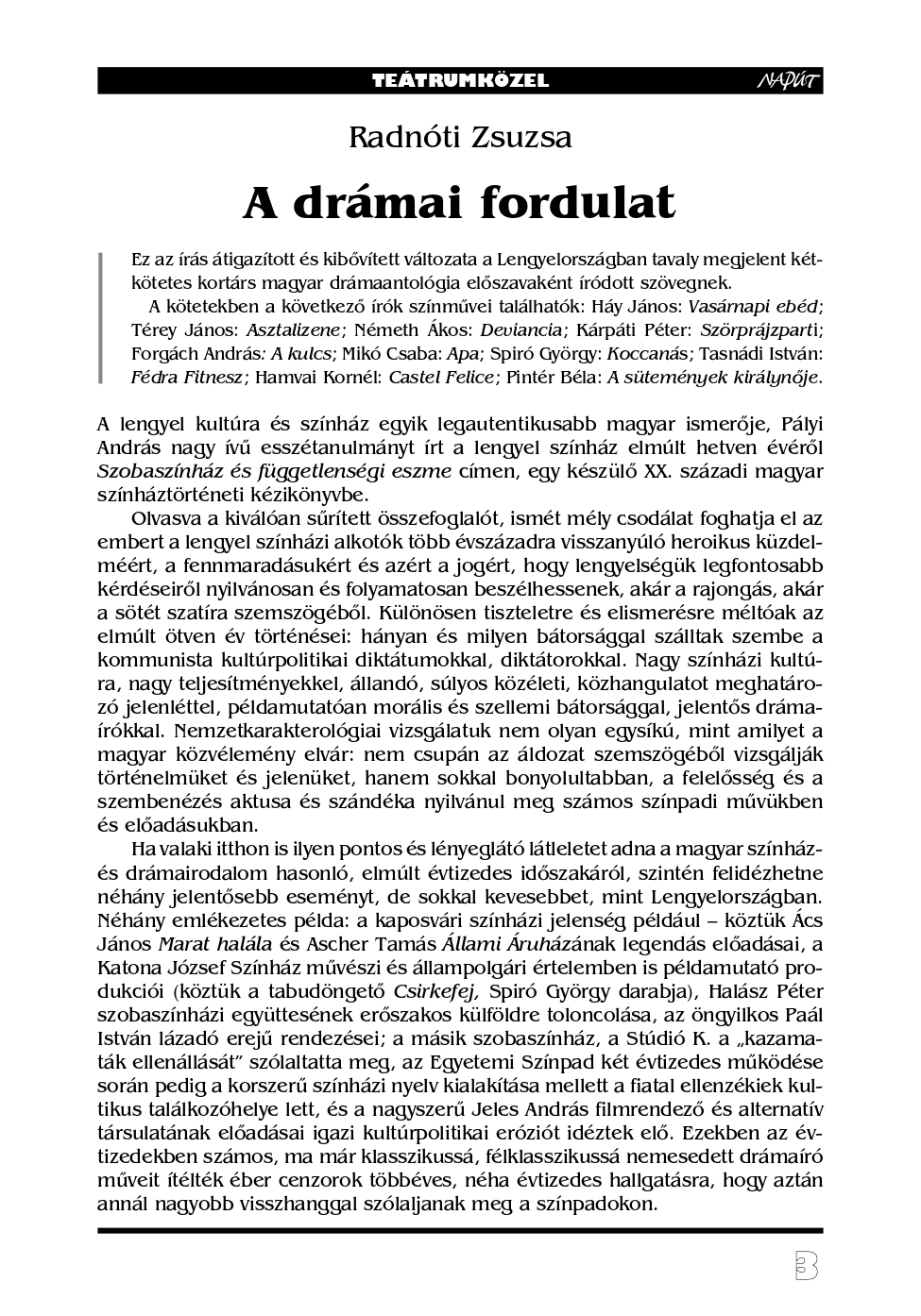 Hosszú éveken át volt visszatérő tavaszi témája lapunknak a „dráma és a színház”. Rá ilyenkor mindig számíthattunk.