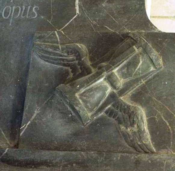 Ez a kép Szigetvárott készült a vár múzeumában kiállított egyik márvány síremlék sarkában fedeztem fel. Ez Ardrich Péter sírköve 1798-ból. Nagyon meglepett, mert egy homokórát látni két szárnnyal. Így könnyebb arra a kérdésre válaszolni, hogy vajon a szárnyas idő jelkép, megszemélyesítés, metafora (a versben sokan annak vélik), allegória vagy toposz? Lehet, hogy mindkettő, hisz Zrínyi, Berzsenyi, de Kisfaludy Sándor is tudta. Őt idézem az Eredeti Magyar Játékszín második kötetének élére illesztett, a Tekintetes Zala Vármegyének címzett ajánlásában: