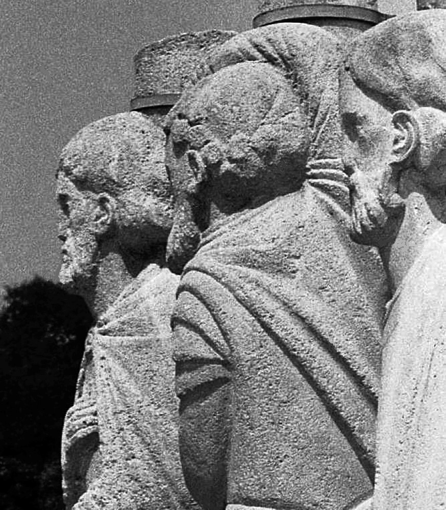 Vajon hány ide látogató vendég a volt Pusztaszeren, aki a bencés kolostor teljes szépségében a feltárt, rekonstruált romjainál megállt? Mert akkor láthatta azt a XIII. század első éveiben készült oszlopszobrokat is, amelyek nagy valószínűséggel a nyugati díszkapuhoz, illetve annak bélletéhez kapcsolhatók.[3]