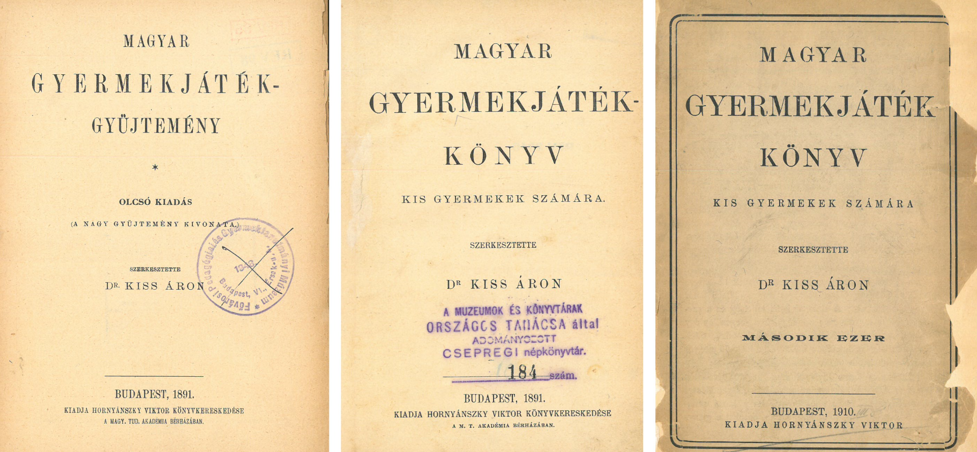 A szatmári tájakról indult, gyökereit el sosem vesztő, protestáns világnézete szerint a valóság talaján álló és a világot akként szemlélő értelmiségiként Kiss Áron jól tudta, hogy az először több mint félezer oldal terjedelemben kiadott s a korabeli Monarchia 46 vármegyéjéből való több ezer játék aligha töltheti be valódi funkcióját: eljutni a szerényebb körülmények között élő családokhoz, kellően még fel nem szerelkezett iskolákhoz, kisdedóvókhoz, parókiákra, s ami a legfontosabb, a néptanítókhoz. Ezért még ugyanebben az esztendőben (!) további három, különböző szempontú és terjedelmű válogatást is megjelentetett a kiadóval. Ezt követően csaknem két évtizeden keresztül szolgálták újabb és újabb kiadások a játékkal való nevelés ügyét Kiss Áron tanár úr és társainak kötetei, majd lettek a magyar népdal, népköltészet magas színvonalú feldolgozásainak ihlető forrásai Bartók, Kodály és munkatársaik dalos könyveiben és műveikben.