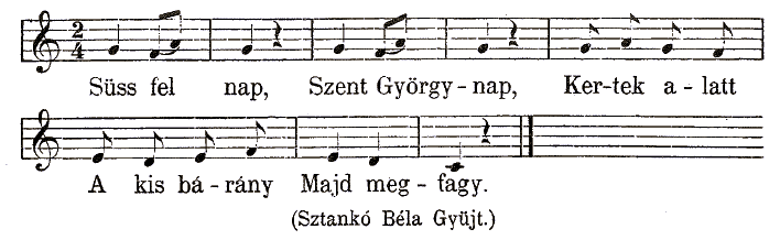 A gyermekvilág tavaszi megélénkülésében a kisebb ifjak számára Szent György napja a „kiszabadulás” ünnepe volt, hiszen újra lehetett végleg és végre kint játszani, megjelentek a tavaszi körjátékok, a lányok zöld ágakkal jártak, a fiúk zajkeltő játékokat készítettek kertekben és a határban. Mindez már ugyan a változó idejű húsvét táját is jellemezte, de ez az április végi „szentűt idő” (ahogy a Kapos-mentén mondták) már visszavonhatatlanul engedte a szabad játék idejét.