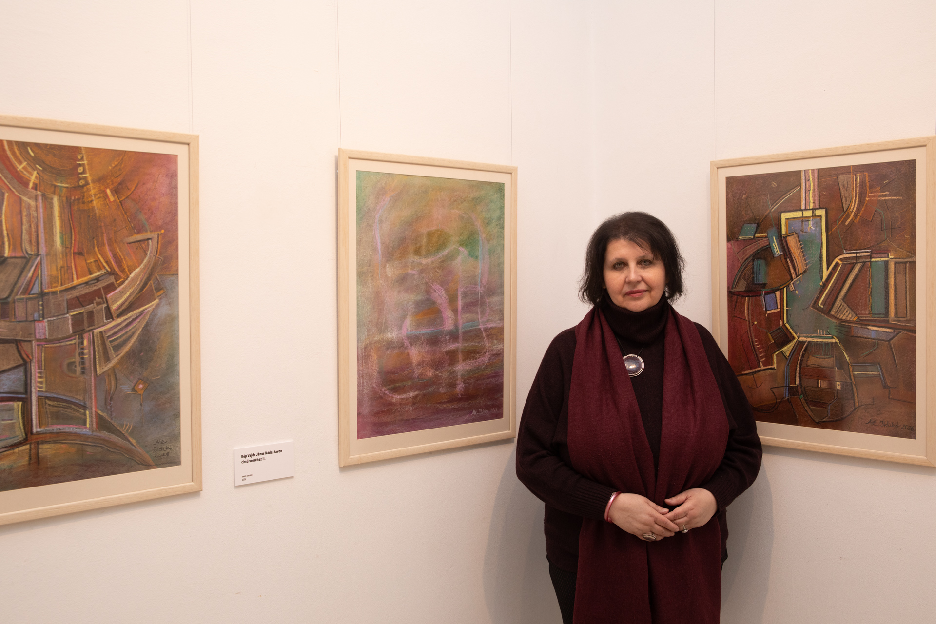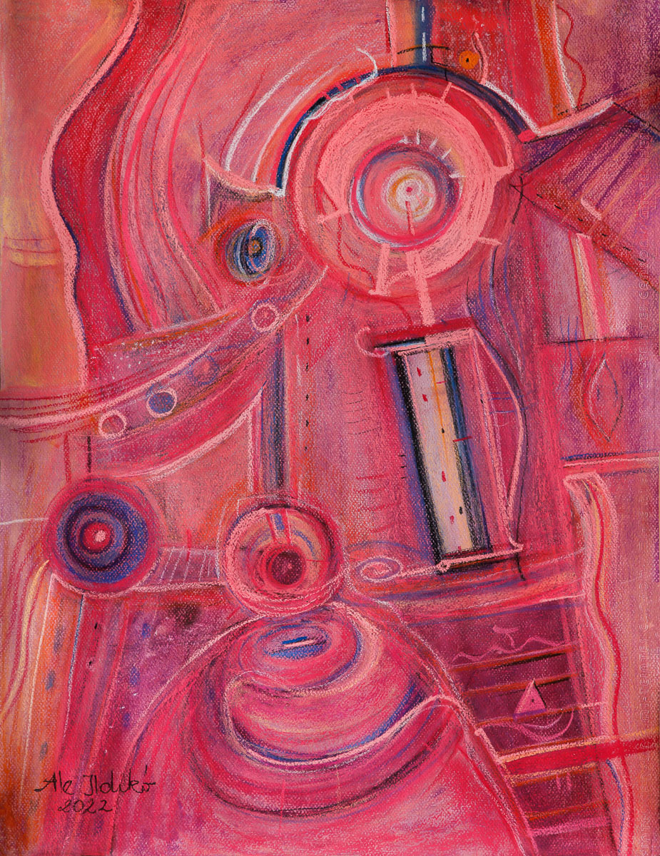 Utak. Színterek. Ale Ildikó alkotói világába léptünk, ez a színtér, itt vezet utunk, hívom Önöket, tartsanak velem! A tér az Alföldi Galériában utat enged a Szárnyalásnak (ez ismét egy kép címe is), elmélyedésnek. Ale Ildikó 1996 és 2026 között született alkotásai közti térben időzünk.